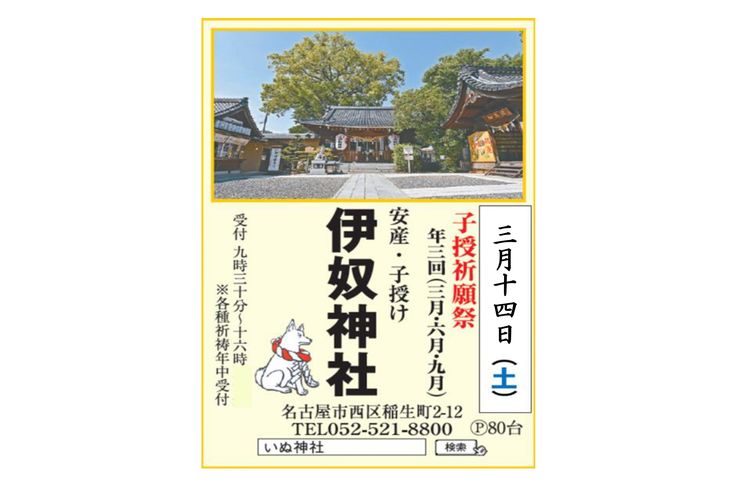 令和8年3月1日(日・戌の日)の御祈祷受付時間のお知らせ