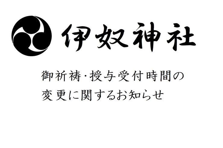 御祈祷・授与受付時間変更のお知らせ